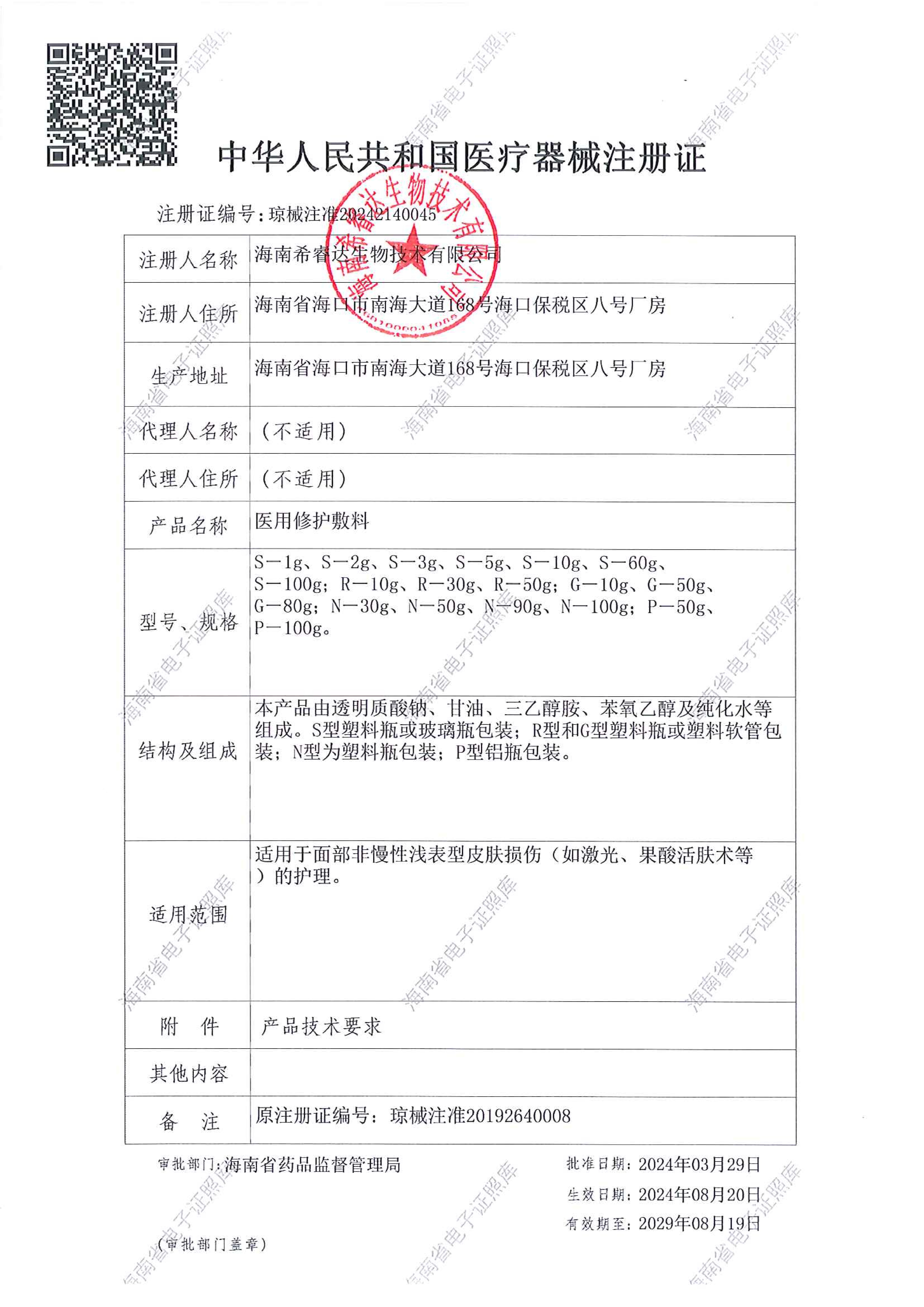 皮肤修护敷料25g*5片(绽妍面膜)